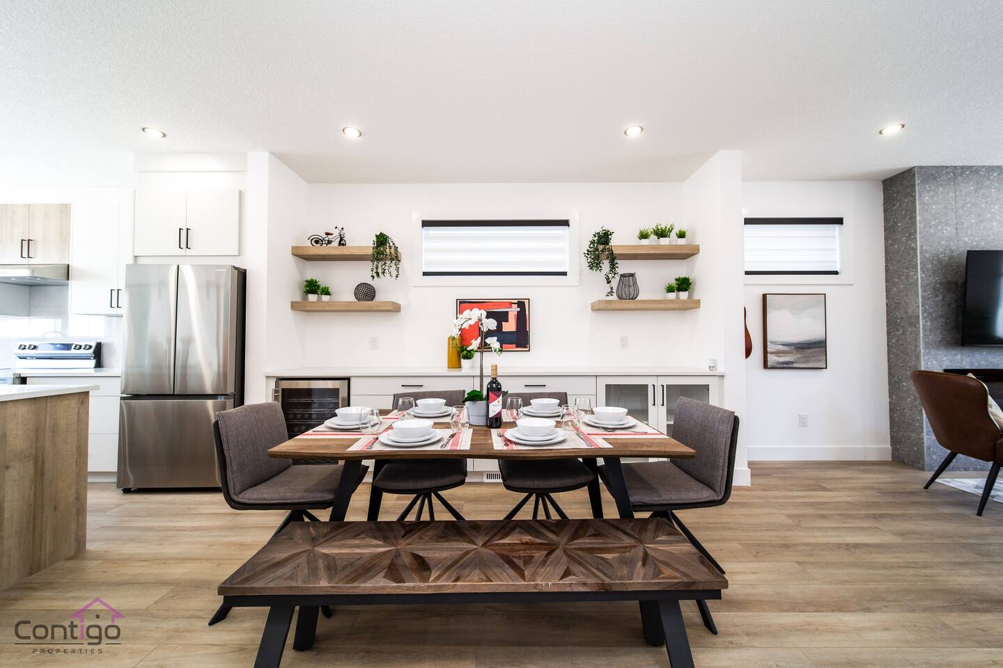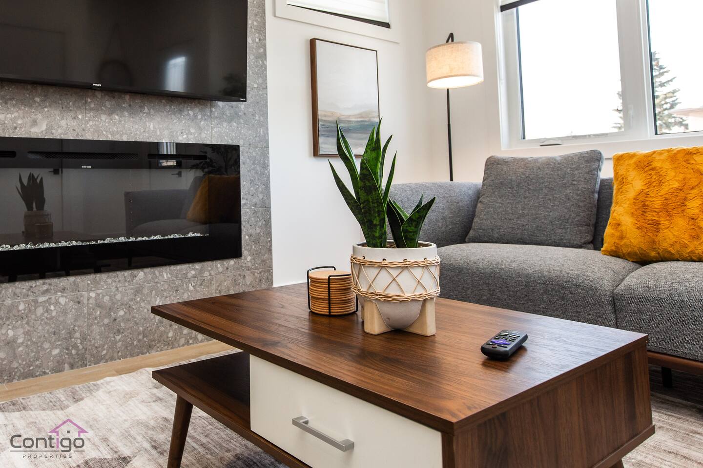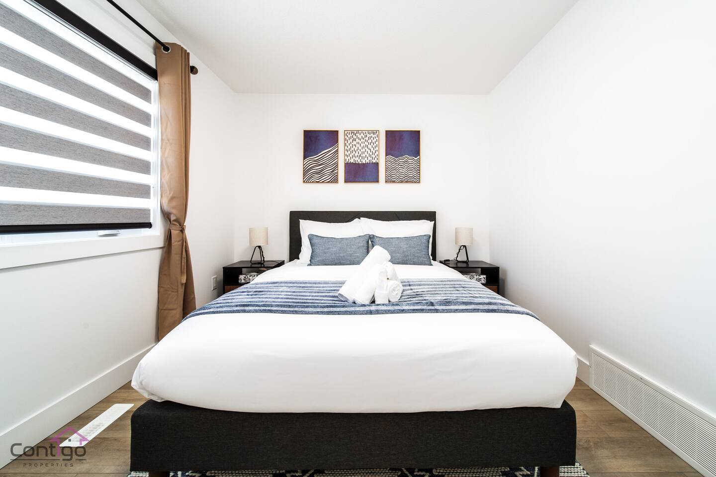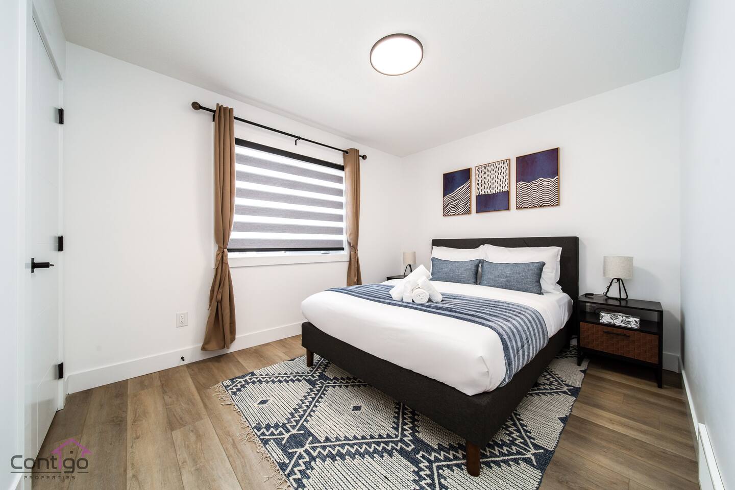 **This is the Main Floor of the home only; the basement is a separate listing** Welcome to your private and stylish retreat in the heart of Edmonton! This listing is for the entire main floor of a brand-new home, offering you a spacious, self-contained 3-bedroom, 2.5-bathroom sanctuary. You are just minutes from Downtown, the University of Alberta, and West Edmonton Mall, making it the perfect home base for exploring the city. ✦ Relax in the inviting living area, where you can stream your favourite shows on the Roku Smart TV (Netflix-ready, just use your own account) or catch up on work with our lightning-fast WiFi. ✦ The fully-equipped kitchen is great to cook in, featuring brand-new stainless steel appliances and all the cookware, dishes, and cutlery you'll need. We've also stocked complimentary coffee and tea to get your mornings started. When it's time to rest, you'll find three comfortable bedrooms: - Master Bedroom: 1 King Bed with ensuite bathroom - Bedroom 2: 1 Queen Bed - Bedroom 3: 1 Queen Bed ✦ All beds are fitted with fresh, clean linens for a restful night's sleep. The 2.5 sparkling clean bathrooms are stocked with complimentary soap, shampoo, and body wash for your convenience. ✦ HIGHLIGHTS & AMENITIES ✦ - Central Location: Reach any part of the city within minutes. - Modern Comfort: Beautifully decorated with simple, modern furnishings for a warm ambiance. - Outdoor Space: Enjoy your morning coffee on the private patio. - Peaceful & Private: Located in a quiet, safe neighbourhood. - Easy Check-In: Seamless self-check-in with a secure door keypad. - Family & Work Ready: Perfect for staycations, family visits, or remote work. ✦ NEED MORE SPACE? ✦ This home contains a completely separate basement suite with its own private entrance. If travelling with a larger group, you can book the "The Zen Den" suite, which sleeps an additional 4 guests. Please check our host profile to see if it's available for your dates. We've put our hearts into creating a space that feels like your own modern, comfortable home. We can't wait to host you!