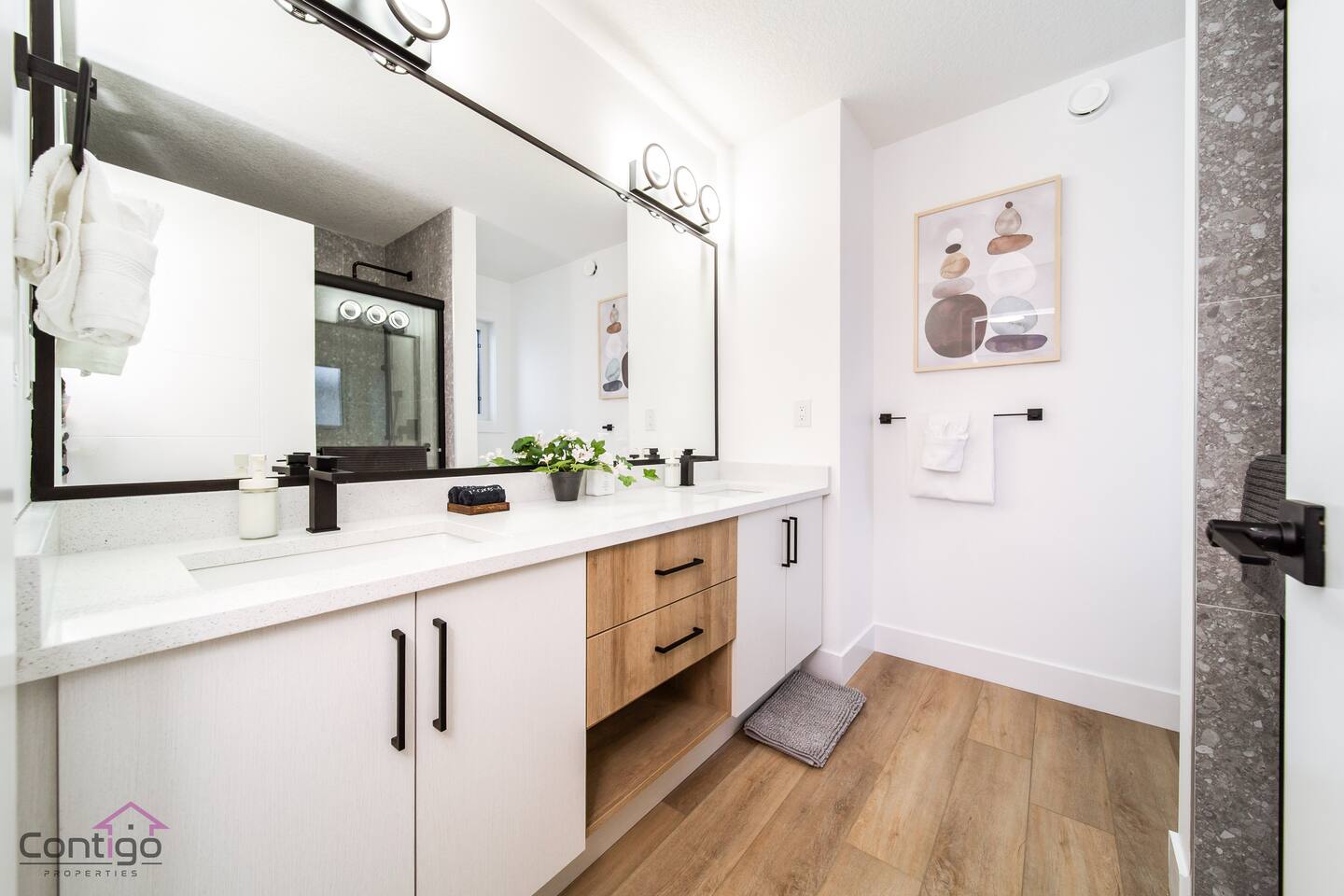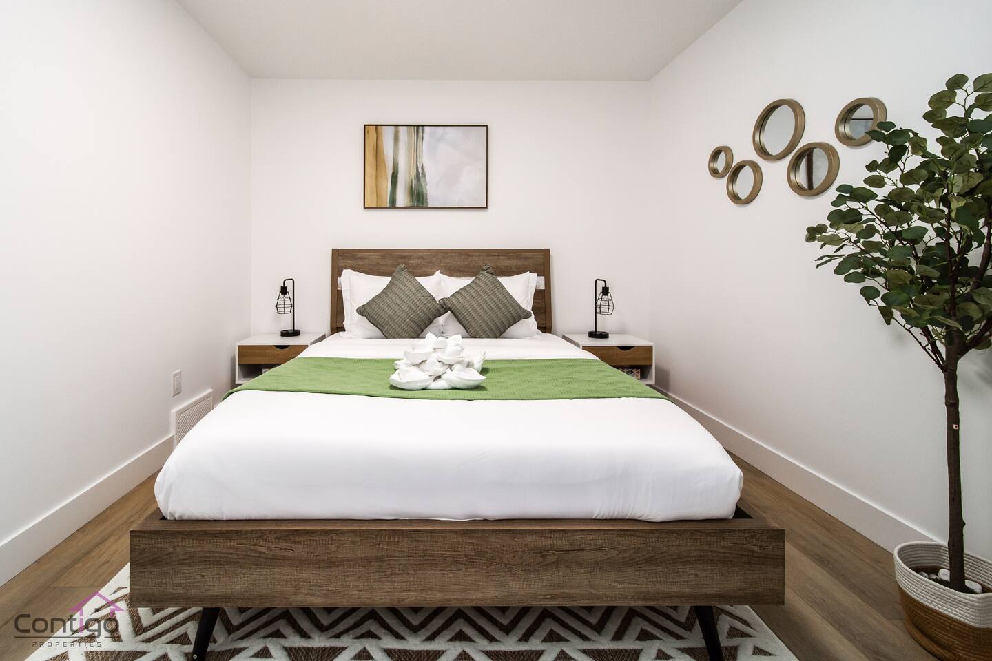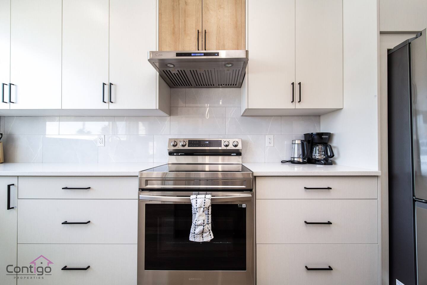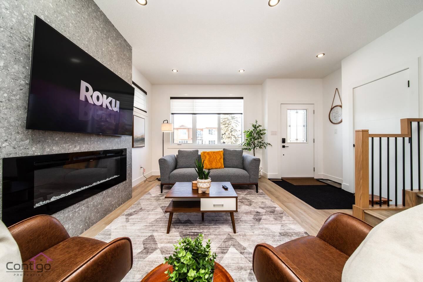 **This is the Main Floor of the home only; the basement is a separate listing** Welcome to your private and stylish retreat in the heart of Edmonton! This listing is for the entire main floor of a brand-new home, offering you a spacious, self-contained 3-bedroom, 2.5-bathroom sanctuary. You are just minutes from Downtown, the University of Alberta, and West Edmonton Mall, making it the perfect home base for exploring the city. ✦ Relax in the inviting living area, where you can stream your favourite shows on the Roku Smart TV (Netflix-ready, just use your own account) or catch up on work with our lightning-fast WiFi. ✦ The fully-equipped kitchen is great to cook in, featuring brand-new stainless steel appliances and all the cookware, dishes, and cutlery you'll need. We've also stocked complimentary coffee and tea to get your mornings started. When it's time to rest, you'll find three comfortable bedrooms: - Master Bedroom: 1 King Bed with ensuite bathroom - Bedroom 2: 1 Queen Bed - Bedroom 3: 1 Queen Bed ✦ All beds are fitted with fresh, clean linens for a restful night's sleep. The 2.5 sparkling clean bathrooms are stocked with complimentary soap, shampoo, and body wash for your convenience. ✦ HIGHLIGHTS & AMENITIES ✦ - Central Location: Reach any part of the city within minutes. - Modern Comfort: Beautifully decorated with simple, modern furnishings for a warm ambiance. - Outdoor Space: Enjoy your morning coffee on the private patio. - Peaceful & Private: Located in a quiet, safe neighbourhood. - Easy Check-In: Seamless self-check-in with a secure door keypad. - Family & Work Ready: Perfect for staycations, family visits, or remote work. ✦ NEED MORE SPACE? ✦ This home contains a completely separate basement suite with its own private entrance. If travelling with a larger group, you can book the "The Zen Den" suite, which sleeps an additional 4 guests. Please check our host profile to see if it's available for your dates. We've put our hearts into creating a space that feels like your own modern, comfortable home. We can't wait to host you!