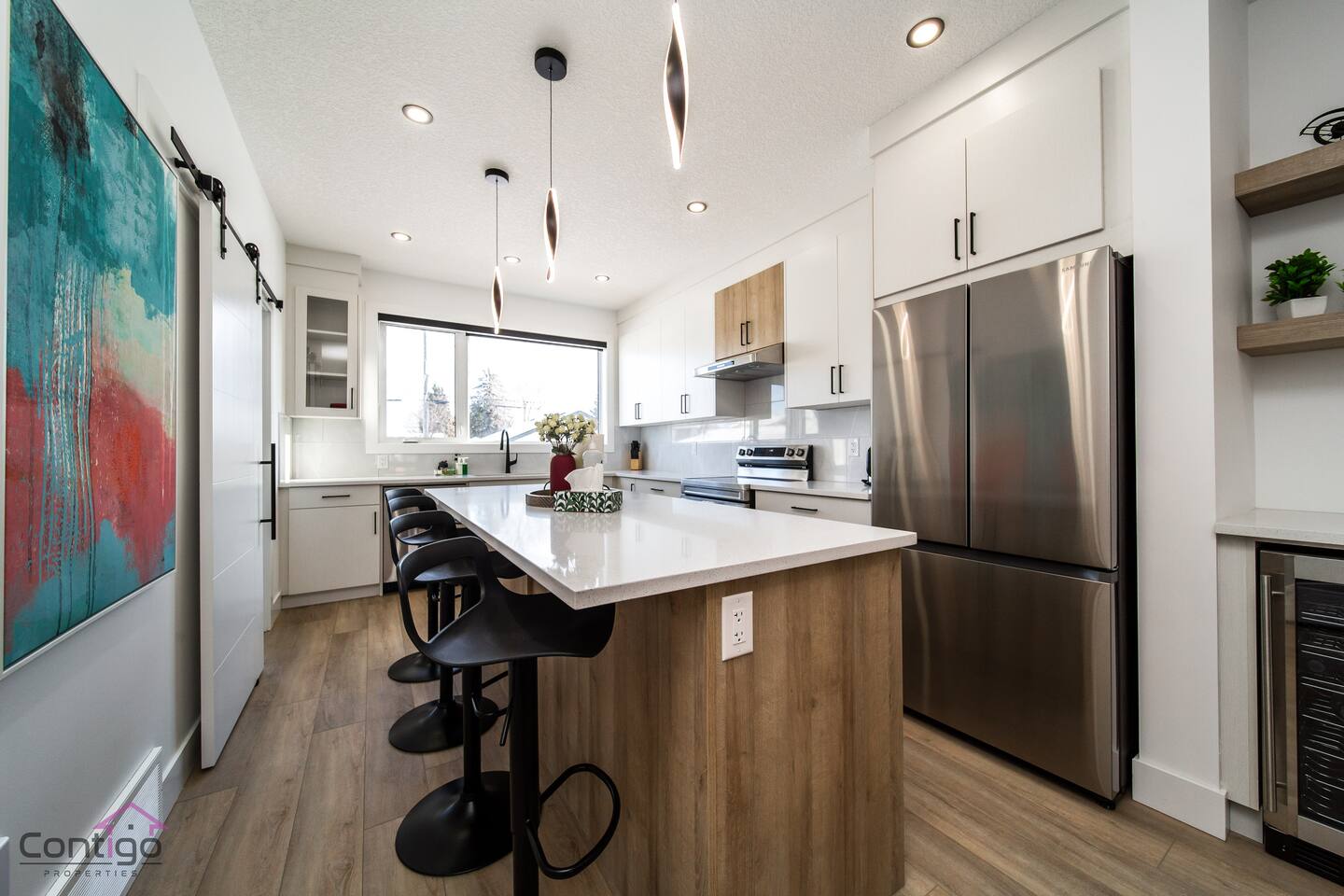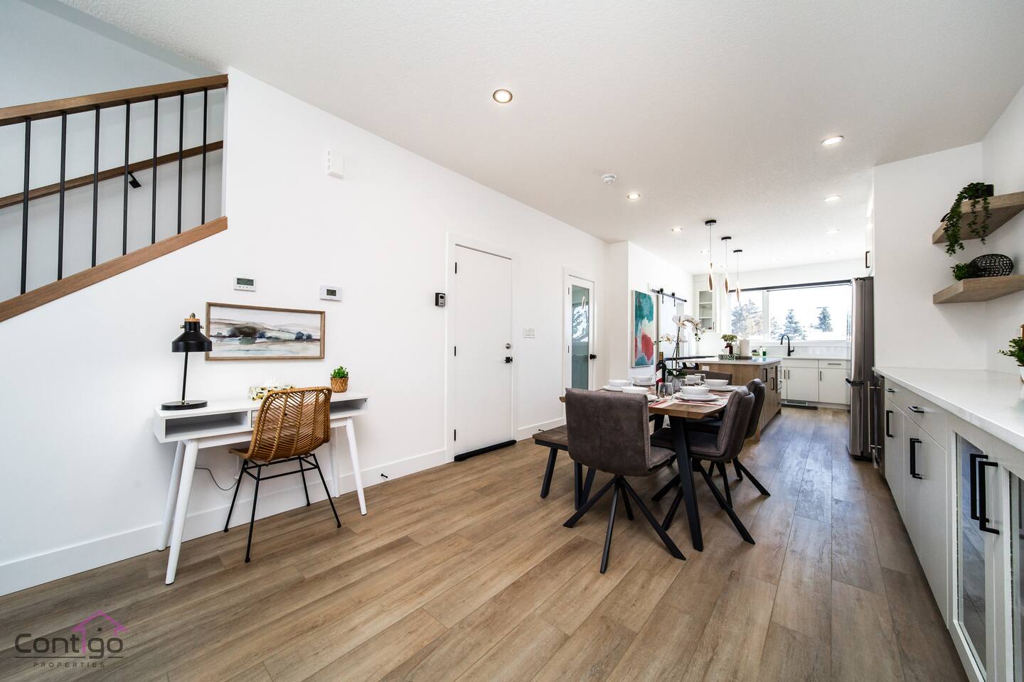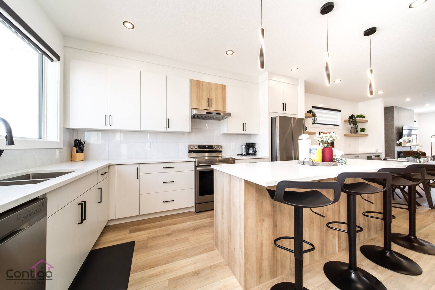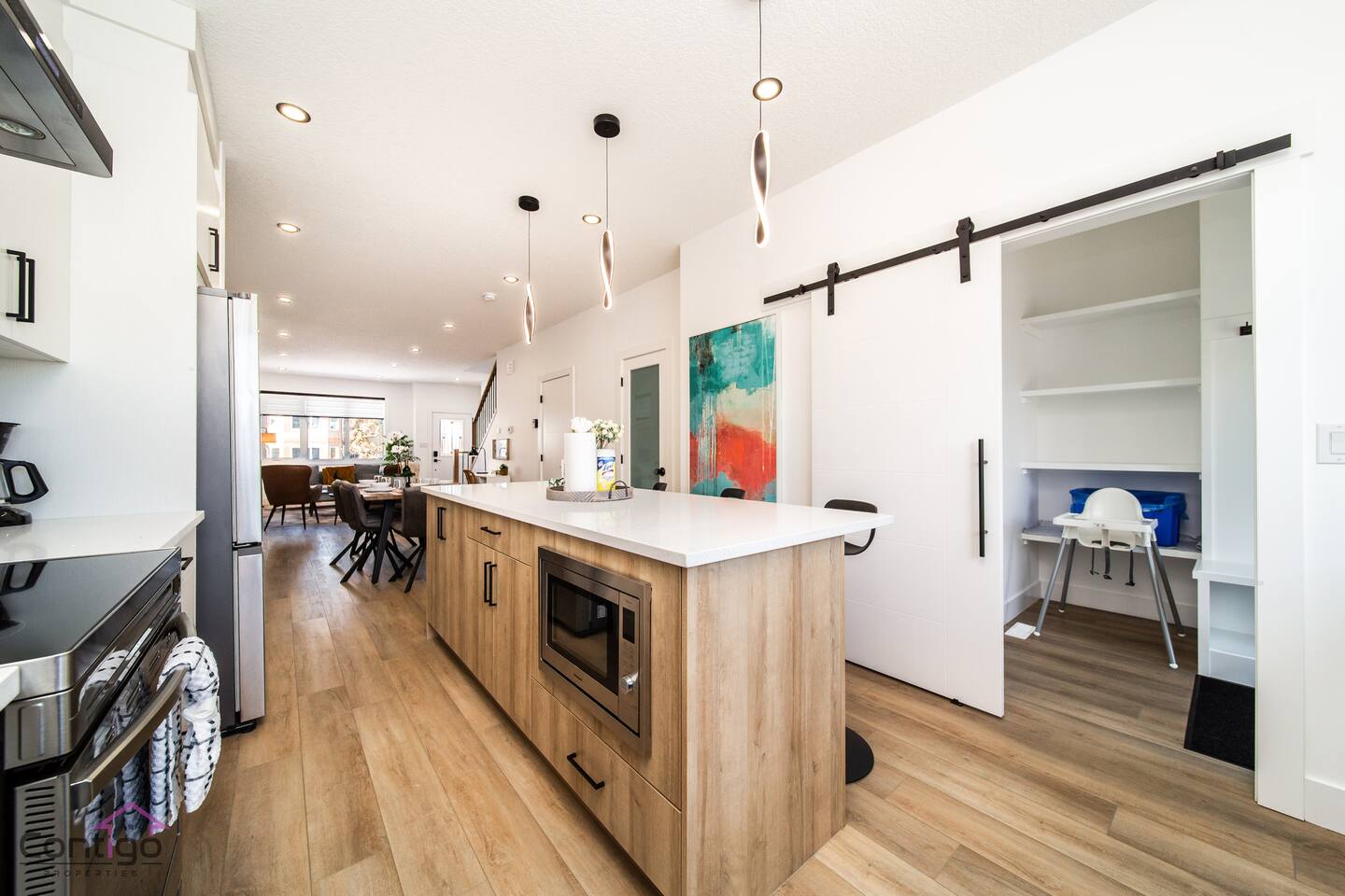 **This is the Main Floor of the home only; the basement is a separate listing** Welcome to your private and stylish retreat in the heart of Edmonton! This listing is for the entire main floor of a brand-new home, offering you a spacious, self-contained 3-bedroom, 2.5-bathroom sanctuary. You are just minutes from Downtown, the University of Alberta, and West Edmonton Mall, making it the perfect home base for exploring the city. ✦ Relax in the inviting living area, where you can stream your favourite shows on the Roku Smart TV (Netflix-ready, just use your own account) or catch up on work with our lightning-fast WiFi. ✦ The fully-equipped kitchen is great to cook in, featuring brand-new stainless steel appliances and all the cookware, dishes, and cutlery you'll need. We've also stocked complimentary coffee and tea to get your mornings started. When it's time to rest, you'll find three comfortable bedrooms: - Master Bedroom: 1 King Bed with ensuite bathroom - Bedroom 2: 1 Queen Bed - Bedroom 3: 1 Queen Bed ✦ All beds are fitted with fresh, clean linens for a restful night's sleep. The 2.5 sparkling clean bathrooms are stocked with complimentary soap, shampoo, and body wash for your convenience. ✦ HIGHLIGHTS & AMENITIES ✦ - Central Location: Reach any part of the city within minutes. - Modern Comfort: Beautifully decorated with simple, modern furnishings for a warm ambiance. - Outdoor Space: Enjoy your morning coffee on the private patio. - Peaceful & Private: Located in a quiet, safe neighbourhood. - Easy Check-In: Seamless self-check-in with a secure door keypad. - Family & Work Ready: Perfect for staycations, family visits, or remote work. ✦ NEED MORE SPACE? ✦ This home contains a completely separate basement suite with its own private entrance. If travelling with a larger group, you can book the "The Zen Den" suite, which sleeps an additional 4 guests. Please check our host profile to see if it's available for your dates. We've put our hearts into creating a space that feels like your own modern, comfortable home. We can't wait to host you!